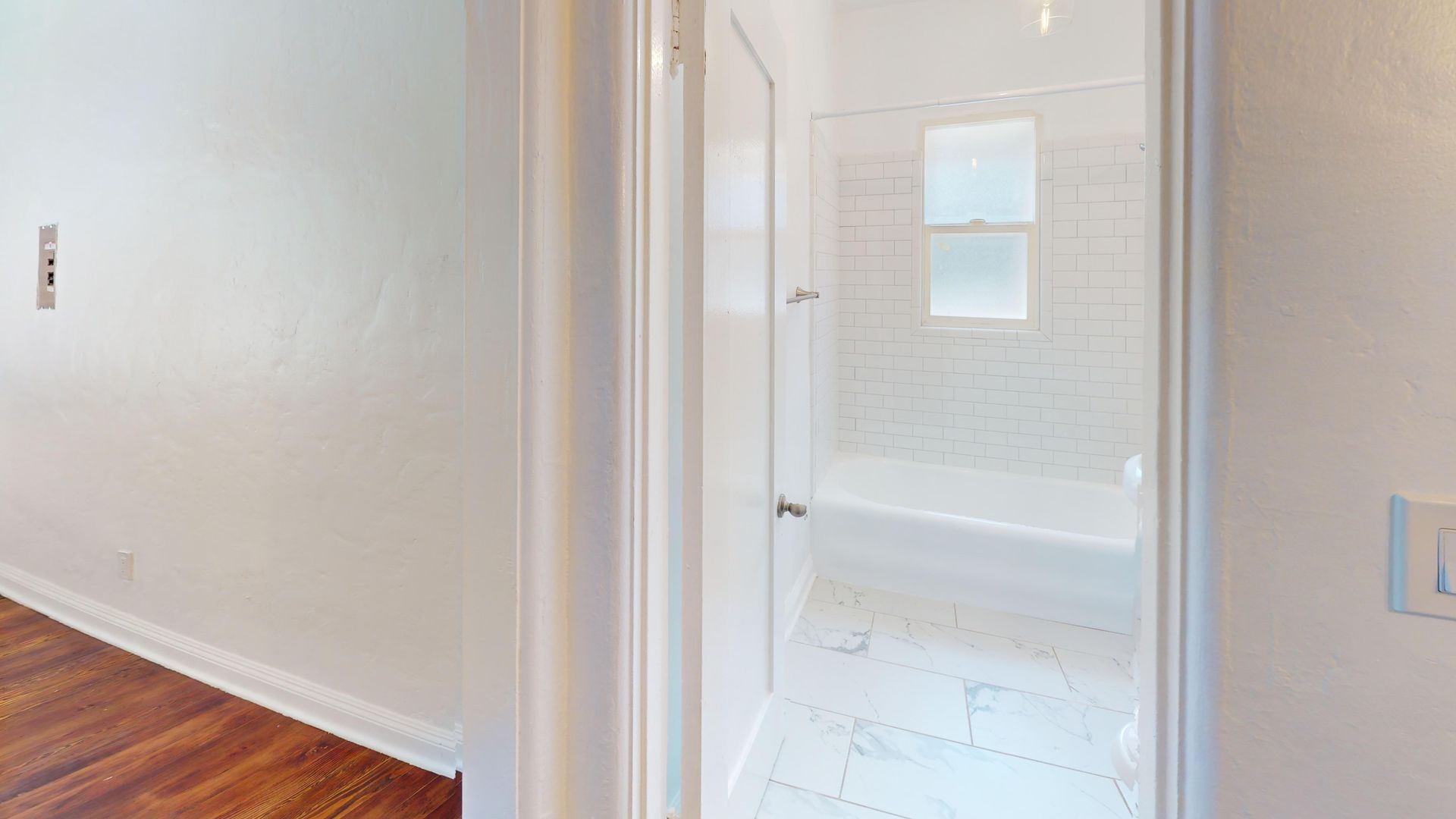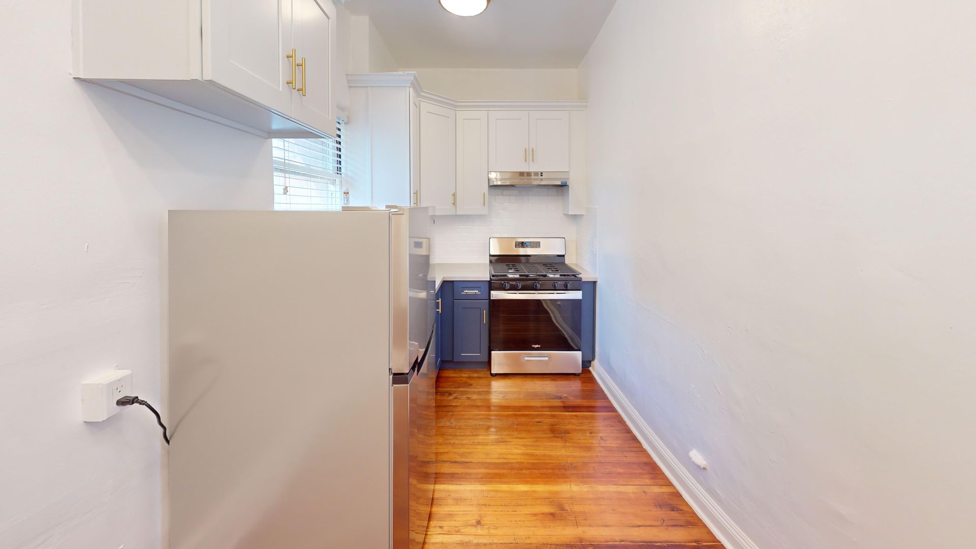 Interior Amenities: Newly remodeled, all new design brass light fixtures and faucets, tile in bathroom, subway-tile shower enclosure, custom made cabinets with quartz counter tops, subway-tiles backsplash and stainless steel appliances.